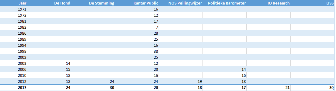 Allepeilingen.com heeft medewerking verleend aan de totstandkoming van de Masterscriptie van H.P. Bijleveld. In de scriptie staat onder andere de volgende grafiek: