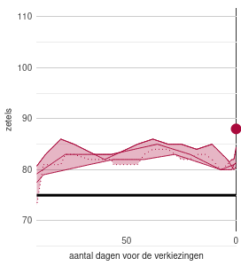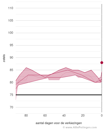 Er wordt een zogenaamde consolidated range getoond. De consolidated range wordt bepaald door het minimum en maximum van de diverse peilingen te bepalen. Tevens worden de uitslagen van de laatste verkiezingen (helemaal rechts) getoond.