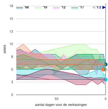Er wordt een zogenaamde consolidated range getoond. De consolidated range wordt bepaald door het minimum en maximum van de diverse peilingen te bepalen. Tevens worden de uitslagen van de laatste verkiezingen (helemaal rechts) getoond.