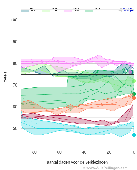Er wordt een zogenaamde consolidated range getoond. De consolidated range wordt bepaald door het minimum en maximum van de diverse peilingen te bepalen. Tevens worden de uitslagen van de laatste verkiezingen (helemaal rechts) getoond.
